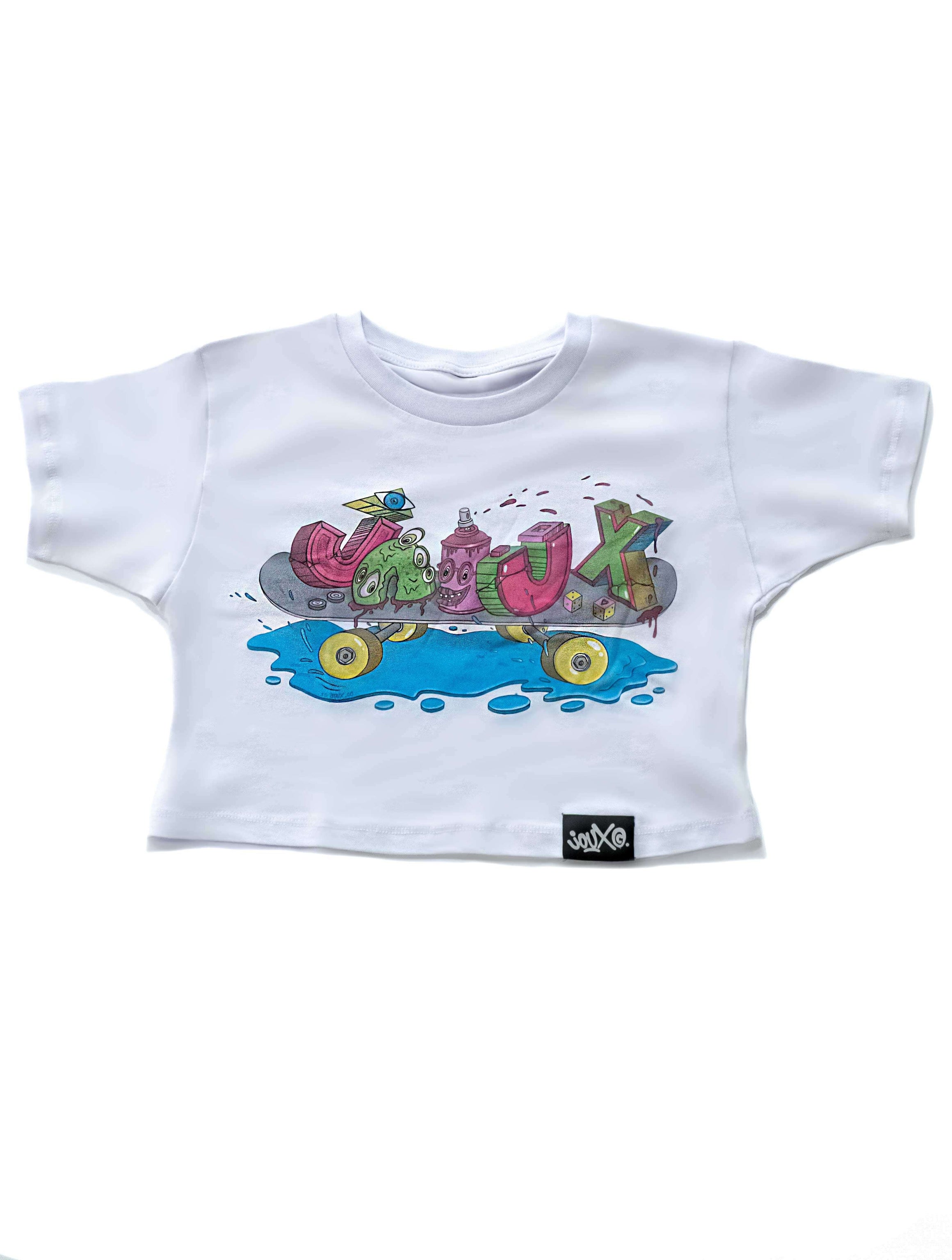 Joux Skate Puddle Crop TopCustom Joux Art Crop This Crop Top is equipped with one of Joux's custom designs Shirt Sizes: Varies Color: Varies Characteristics: High quality Crop Top with Joux's custom "Skate Puddle" graphic featured at the center -Joux Co Custom Designs-